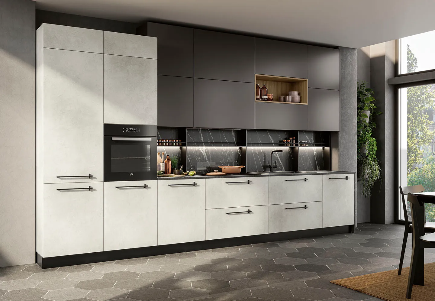 Materiali selezionati per la loro qualità e durabilità, garantendo così cucine non solo magnifiche, ma anche realizzate per durare nel tempo. Piani di lavoro spaziosi, soluzioni di storage intelligenti e una gamma di elettrodomestici all’avanguardia si combinano per creare un ambiente dove funzionalità e bellezza vanno di pari passo.
